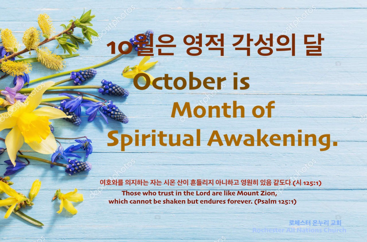 2022 10월은 영적각성의 달 Publish on October 02,2022 | 온누리교회 페이지 정보 작성자 온누리교회 댓글 0건 조회 1,828회 작성일 22-10-02 16:38 목록 본문 2022 10월은 영적각성의 달 이전글2022 11월은 영적 수확의 달 22.11.05 다음글2022 9월은 영적 재도약의 달 22.09.03 댓글 0 댓글목록 등록된 댓글이 없습니다. 목록